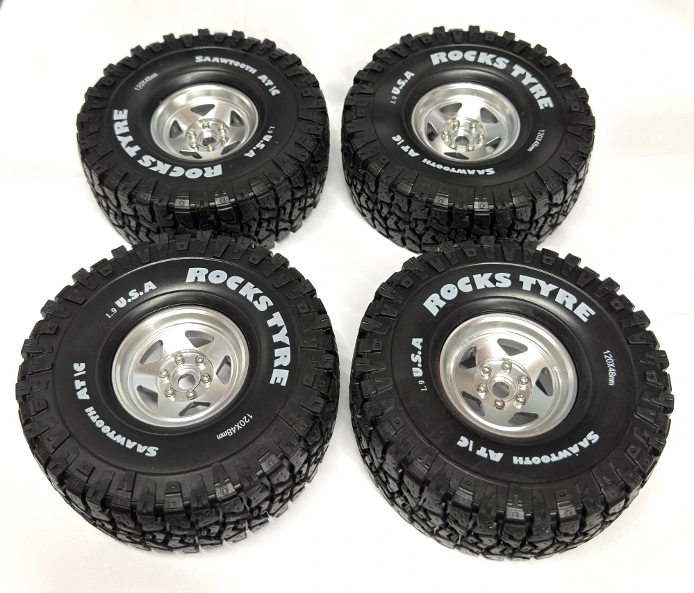 Kompletní set kol velikosti 1.9" pro expediční modely. Univerzální vzorek pneumatik pro všechny povrchy. Pneu jsou na discích zajištěny systémem beadlock - disk je ze tří částí, které jsou sešroubované dohromady. Již žádné lepení pneumatik k diskům. Navíc jsou pneumatky vodotěsně uzavřené, voda se do gum nedostane - nezničí se molitan.
